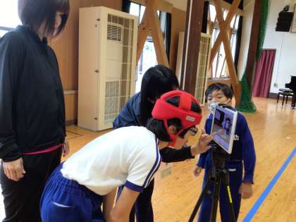 体や手先を動かす活動ができるように、先生が考えたキラッとランドで学習をしました。よい姿勢やマット運動の動きなどを学習用タブレットで撮影し、自分で確認しました。自分で客観的に見ることで、自分の成長を確認することができました。