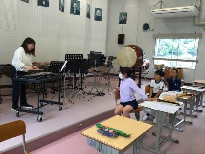 6/2 6年生 音楽科「ラバーズコンチェルト」 公開日 2025/06/02 更新日 2025/06/02 各学年から 合奏に向けた楽器決めを行っていました。先生の演奏を聞いて、どの楽器にしようか考えていました。どうやら木琴が人気のようです。