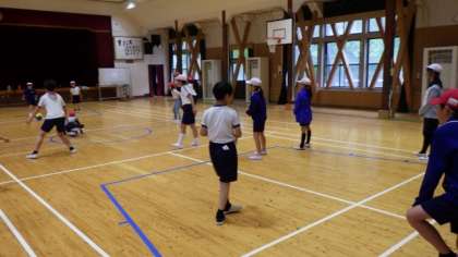 4色縦割り班での活動です。6年生がみんなが楽しめる遊びを考えてくれました。この班は、ドッジボールをしました。