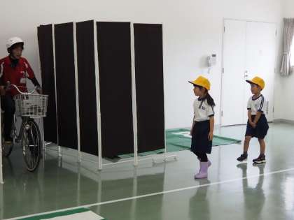 1年生は、豊田市交通安全学習センターで交通安全教室を行いました。1年生は主に、横断歩道の渡り方など、正しい歩行の仕方を学びました。