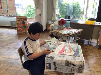 わくわくの教室の中で見える景色を描いている子、6年生の教室から見える外の景色を描いている子、選んだ景色はいろいろでした。集中して、丁寧に色塗りができていました。