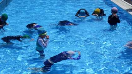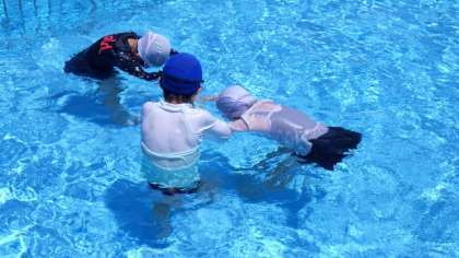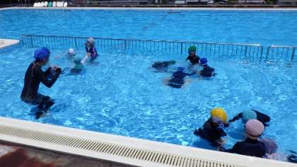 今日の課題は、水に顔をつけることでした。みんな、水に顔をつけようとがんばっていました。