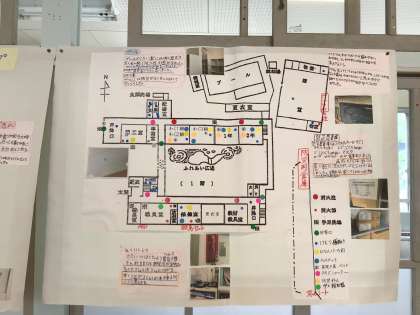 学校の防災設備について調べたことを、分かりやすく防災マップにまとめました。
