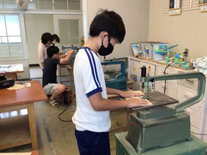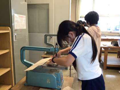 糸のこぎりを使って、板を切っています。慎重に板を動かしながら、思い通りの形に切ることができていました。