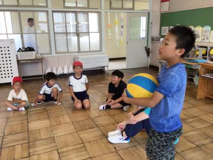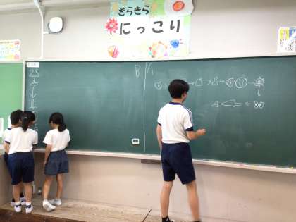 黄チームは、爆弾ゲームと絵しりとりをしました。6年生が盛り上げてくれ、みんな笑顔いっぱいでした。