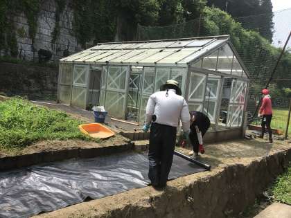 7/9 畑では・・・ 公開日 2025/07/09 更新日 2025/07/09 各学年から 昨年度末から、子どもたちが畑に安全に行けるように、校内整備員さんや公務手さんが通路を広くするなど整備をしてくださっています。 今日は校務支援員さんや養護教諭が、畑の通路に防草シートを敷いていました。毎日の収穫を楽しみに畑に行く子どもたちですが、こうした支えがあるんですね。