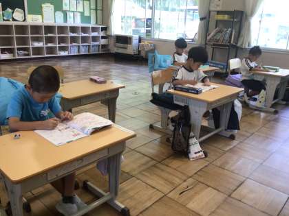 夏休みを前に、これまで学習した内容を復習しています。みんな早く終わらせようと真剣です。