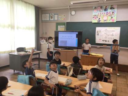 7/15 あすっこペア活動4 公開日 2025/07/15 更新日 2025/07/15 各学年から 4年生は、1・2年生に学校の防災対策について発表しました。今回は学習用タブレットにもまとめ、低学年にもわかりやすい発表になるように、改良しました。発表後,実際に校内を一緒に回るグループもあり、聞いたことを確かめることができました。