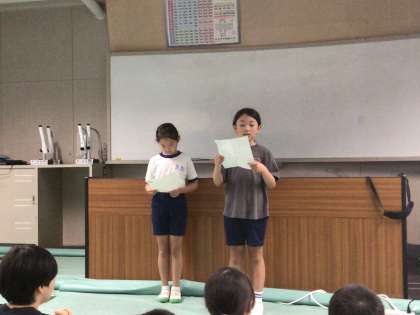 3年生が、国語で学んだ「わたしの説明文」で書いた自分のことを紹介しました。好きな本のこと、小さい頃に家族に絵が上手だねと言われ、絵を描くのが好きになったことなどを話してくれました。聞き手も話をよく聞いて、たくさん質問がでました。