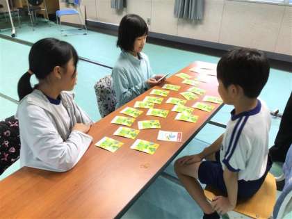 エコットの方に来ていただき、海ごみの種類や現状を学びました。カードゲームや動画を通して,町で出たゴミが川を通って海に流れていることを知り,ゴミを出さないようにすることの大切さを学びました。