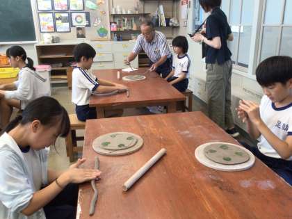講師の先生に教えていただきながら、いちごのお皿を作りました。粘土をこね、丁寧に形作りながら、世界に一つのお皿を作っています。