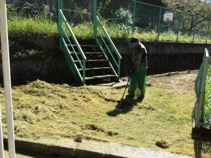 校内の草刈りを、校内整備員の方がしてくださっています。今日は、雨の影響か、鯉の池の水が止まってしまい、水が流れるような作業を足助グランドまで行ってしてくださいました。