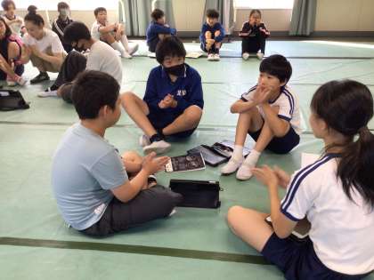 今日は、学習用タブレットのシンプルプレゼンを使って、「前期に頑張ったことと後期に頑張りたいこと」を伝え合いました。簡単な資料を準備することで、相手を意識した伝え方ができました。
