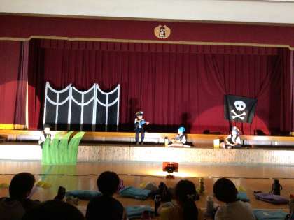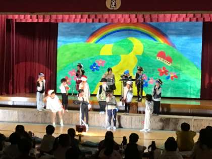 低学年の劇は、「ブレーメンの音楽隊」。全校の人に見てもらって、緊張している様子でしたが、一生懸命取り組む姿に、見ている子どもたちも笑顔になっていました。この1週間で、最後の合奏がとても上達していました。