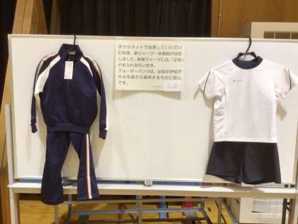 明日、講堂後方に、令和8年度から変更になるジャージと体操服を展示します。ぜひ、ご覧ください。