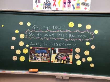 朝、どの教室の黒板も、担任の先生からのメッセージや仲間へのメッセージでいっぱいでした。