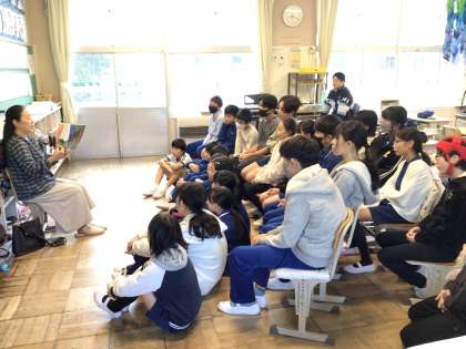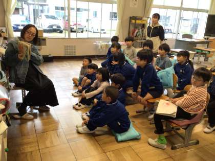 アンパンマンの本、ハロウィンの本、昔話など読んでいただきました。子どもたちは前のめりに話を聞いていました。