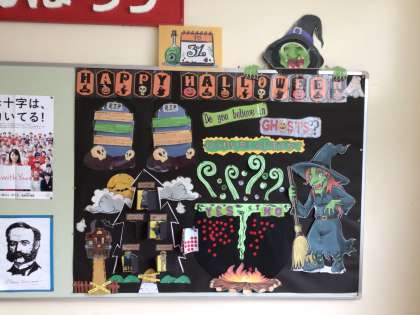 10/27 もうすぐハロウィン 公開日 2025/10/27 更新日 2025/10/27 各学年から 昇降口の掲示板に、ALTの先生が作ってくださったハロウィンの掲示が飾られています。ハロウィンの雰囲気を楽しめる掲示になっていますので、お立ち寄りの際はぜひご覧ください。