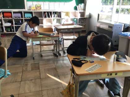 防災マップが完成に近づきつつあります。防災マップには、町で見つけた町並を守る工夫がたくさん詰まっていました。読む人のことを考えて、グループで協力しながら、丁寧に仕上げていました。