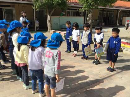 最後は、手作りのカードをプレゼントしました。カードにはハロウィンのおばけがついていて、年長さんからは、「かわいい」の声があがっていました。