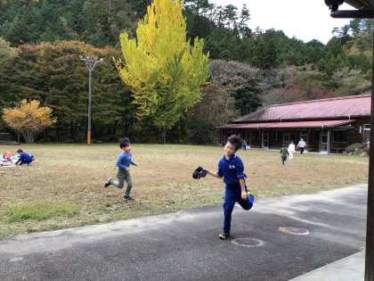 五平餅を作ってみんなでご飯を食べました。その後、秋を感じながらみんなで楽しく遊びました。