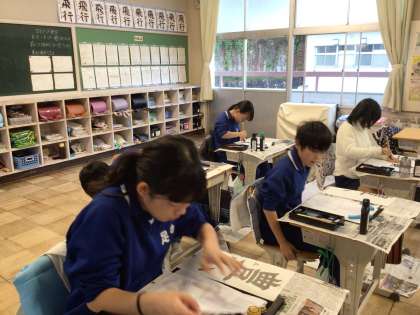 11/10 5年生 書写 公開日 2025/11/10 更新日 2025/11/10 各学年から 書き初め大会に向けて練習を始めました。今年は「豊かな海」を書きます。「豊」という字の空白を作ることに、苦戦しています。