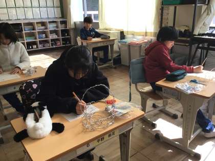 針金を使って作品づくりに挑戦しました。 子どもたちは思い思いのアイデアを形にし、本物そっくりのメガネを作る子や、バスケットを丁寧に編み上げる子など、個性豊かな作品が出来上がりました。