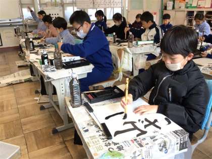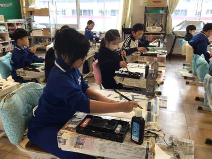 1月に予定されている書き初め大会に向けて、3年生は初めて書き初め用紙に筆をおろしました。課題は「山ざくら」。大きな紙に向かう子どもたちは、緊張感をもちながらも心を落ち着け、教室に静かな空気が広がる中で一文字一文字に集中して取り組むことができました。真剣な眼差しで筆を運ぶ姿から、書き初めに向けた意欲と成長が感じられました。