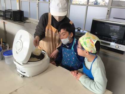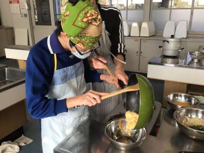今年は畑で育てたさつまいもがあまり取れなかったので、わくわく学級の子のお宅でとれたさつまいもをいただき、さつまいも料理を作りました。メニューはスイートポテト、さつまいも入りみそ汁、大根の煮付け、ウインナーときのこのニラ玉、ふかしいも、さつまいもご飯でした。