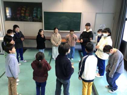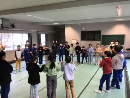 活動の後半には、グループ同士が合体してひとつの大きなグループになり、さらに難しくなったゲームに挑戦しました。人数が増えることで一層集中力や工夫が必要となり、子どもたちは声を掛け合いながら楽しそうに取り組んでいました。活動を通して、子どもたちは「相手を意識して協力することの大切さ」を学ぶことができました。