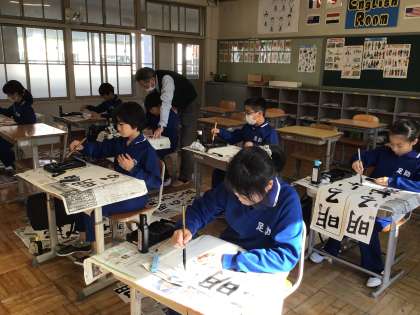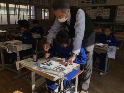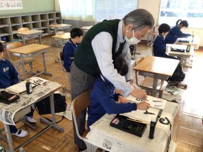 4年生も2回目のご指導です。かすれてしまったり、文字が大きすぎたりと苦戦中です。