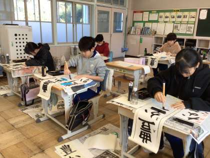 12/18 4・5年生 書写 公開日 2025/12/18 更新日 2025/12/18 各学年から 書き初め大会前の最後の授業です。静まり返った雰囲気の中、お手本をよく見ながら、真剣に練習していました。