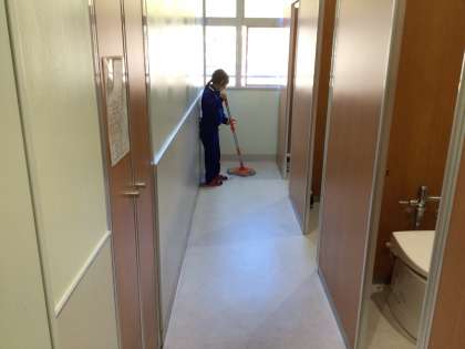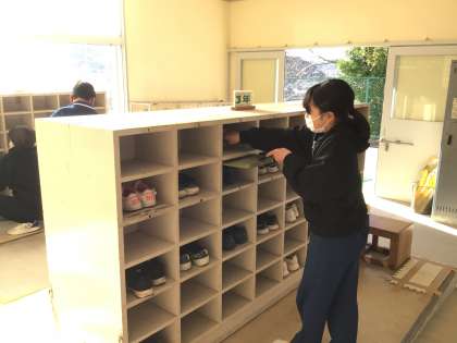 縦割り清掃での大掃除最終日です。今日の重点箇所は、掃除道具入れの中の整頓や、トイレの床、教室のストーブ周りなどです。みんな黙々と掃除に取り組んでいました。