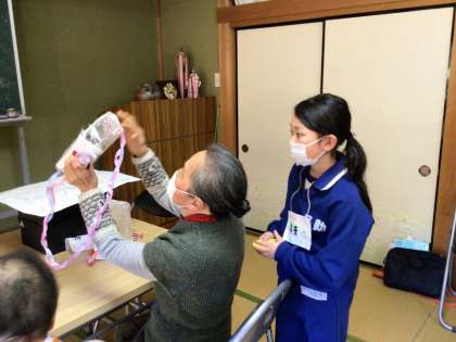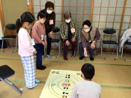 ふりふり輪投げチーム、まとあてガエルチーム、魚すくいチームの3つのグループに分かれて活動しました。子どもたちは、ゲームの説明やサポートを通して、相手に伝える力や思いやりの心を育んでいました。