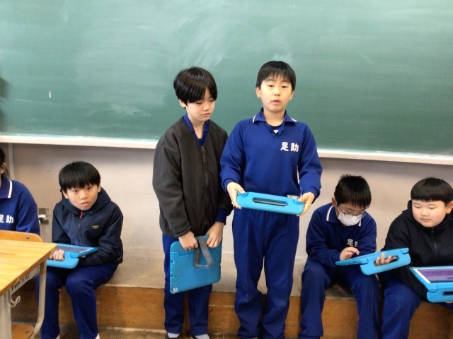 あすっこペア活動や学校公開日に向けて、練習をしていました。1年間調べてきた防災についてまとめたことを、心の相談員さんに向けて発表していました。