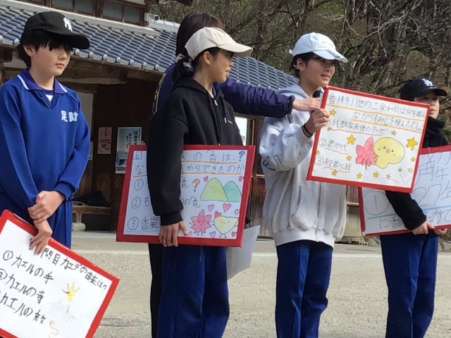 香嵐渓で植樹式に参加しました。式中に行った香嵐渓クイズは、全員が堂々と発表し、足助観光協会の方にも褒めていただきました。植樹の後、香嵐渓を守るための募金の呼びかけも行いました。5年生の呼びかけに、多くの方が協力してくださり、今日、足助観光協会に寄付させていただきました。5年生が植樹した紅葉が香嵐渓にありますので、ぜひご覧ください。