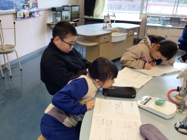 2/24 3年生 理科 公開日 2026/02/24 更新日 2026/02/24 各学年から ものの形と重さについて考えました。粘土を小さくちぎったり、くっつけたりしながら重さを調べました。どんな形に変えても、ものの重さは変わらないことが分かりました。