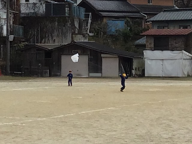 生活科の学習で作ったたこを、運動場で元気いっぱい揚げました。 この日は風の強さもちょうどよく、空高く舞い上がるたこに子どもたちは大喜び。 運動場には「見て見て、あがったよ」と楽しそうな声が響き、冬の空の下に笑顔が広がりました。