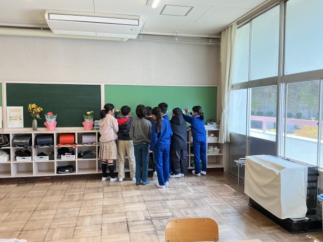 また、教室の掲示物を全員で助け合いながら掲示する姿にほっこりしました。