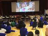 最後は、学習用タブレットの「地図パズル」で県のパズルの早技を披露しました。画面...