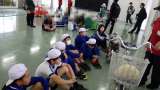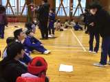次は、倒立前転をその場で行なって見せました。その技を見て、どうしたらできるのか...
