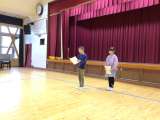 講堂で学級遊びのバレーボールをしていました。 書写の前の時間でしたが、遊びに行く...