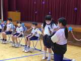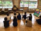 入場の後、自己紹介をしました。名前と好きな色、好きな食べ物、好きな遊びなどを話...