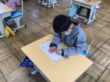 1年生は、かきかたの勉強をしていました。姿勢、鉛筆の持ち方、書き順などに気を付け...
