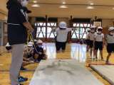 1年生は、体育の授業でマット運動をしていました。柔軟体操を行った後、前転に挑戦...