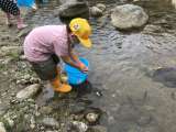 巴川魚協の役員の方が作られている巴川環境保全会の方に1、2年生が稚鮎の放流体験...