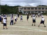 縦割り班でドッチボールをしました。高学年は利き手の反対の手でボールを投げます。...