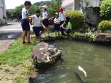 6月29日(木)、あすっこタイムで鯉の餌やりをしていた子どもたちです。 池...