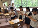 6月25日(火)、3年生は外国語活動で、漢字の画数を英語で言い、加えてヒントを...