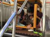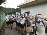 防災指導者「防サイ君」による地震体験を行いました。説明を受けた後、緊張して防サ...